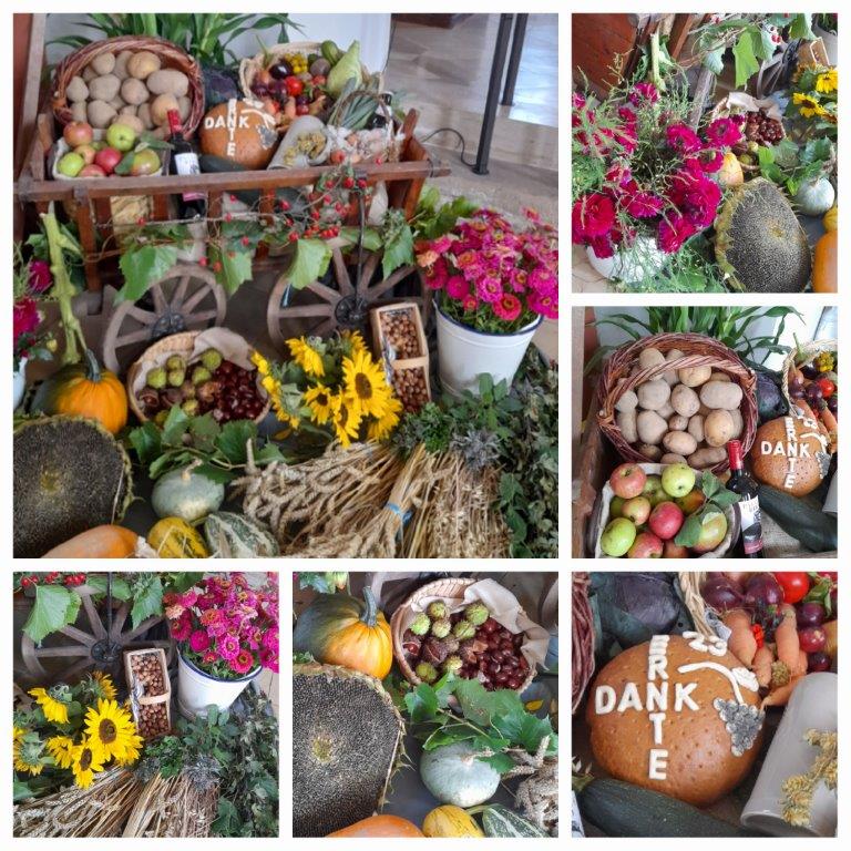 Der reich geschmückte Altar erinnert an die Fülle der Natur und daran, wie wichtig Dankbarkeit für die Gaben des Jahres ist. Zugleich macht er sichtbar, wie eng unser Leben mit dem Rhythmus der Jahreszeiten verbunden ist.